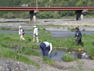 【左】天竜川河川敷の熊野(ゆや)の長藤駐車場