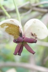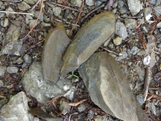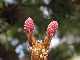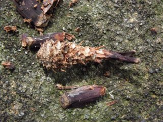 【左】リスがマツボックリを食べた跡(エビフライ)