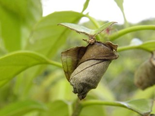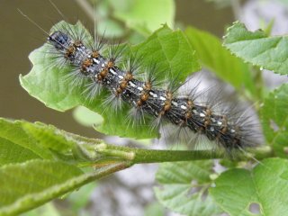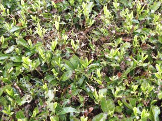 【左】害虫に犯されたお茶の木、チャドクガ?
