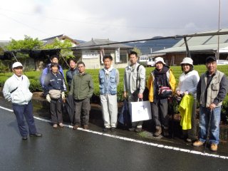 【左】春野町砂川の有機茶栽培、鈴木さんと記念写真