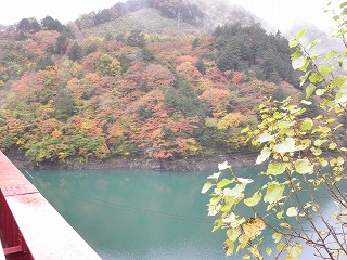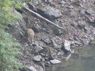 A乗鞍高原〜安房峠:犀川にかかる橋の上から見事な紅葉を見ることができました。川の岸辺にニホンサルの群れを発見しました。