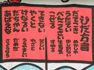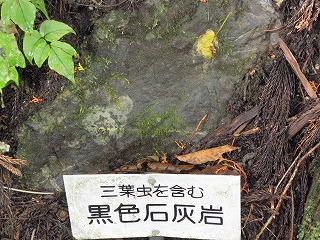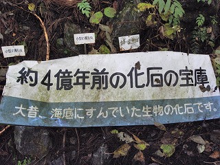 【左】飛騨の方言              【中】旧の化石関係の資料館           【右】化石が入った石灰岩