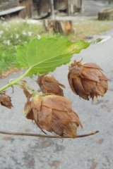 【左】近くの川原に化石を含んだものがある。         【中】カラハナソウ、ホップに近い仲間        【右】ニホンミツバチをスズメバチが攻撃している。