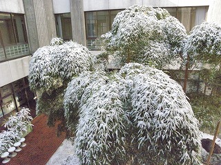 【左】このあたりとしてはたくさん雪が降りました。    【右】中国旅行のスライド発表