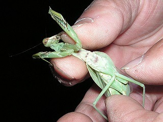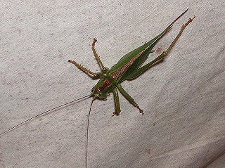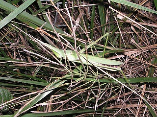 待ち時間を利用して1時間の予定で自然公園南門から東門間の農道を、ナイトウオッチィングとして往復した。クツワムシ、ツヅレサセコオロギ、アオマツムシなど秋の虫が、競って声をたてている。ショウリョウバッタやオオカマキリが草先にジッとしていたりでなかなか面白いものだ。