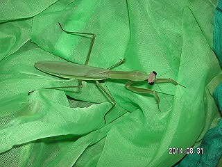 【左】ヤブキリ♀ 【中】ハラビロカマキリ(胸の色は赤くないのでハラビロカマキリと判定) 【右】モモイロツマキリコヤガ