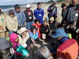 ・講師を囲んで、漂着物採集