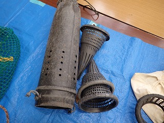 【左】イイダコを採る漁具         【中】タコを釣る魚具        【右】ウケという漁具
