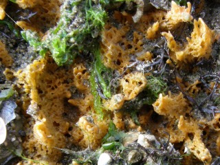 クロイソカイメン、ナミイソカイメン、ダイダイイソカイメン ヤッコカンザシ、タマシキゴカイの卵塊、扁形動物のヒラムシ、ミズクラゲ