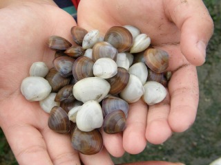 シオフキ、アサリ、マテガイ、ツメタガイ、イシダタミ、アラムシロガイ、イボニシ、フトヘナタリガイ、ソトオリガイ