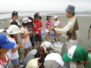 知多地方で唯一海に面していない阿久比町の子供たちにとって、海辺の生き物と触れ合うことは大切なことです。科学技術が進み、生き物たちの生活が鮮明な画像で親切ない解説がついたものがいつでも見ることができる時代です。しかし、生き物たちが生活している現地に行くことによって映像では味わうことが出来ない大きな収穫があります。それは、五感を体験できることです。お金と時間がかかりますが、この五感を体験することによって子供たちの頭に体験が焼きつくのです。それが子供たちに自然を大切にし、環境を守る心と意識が芽生えるのです。