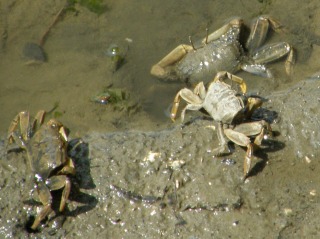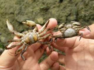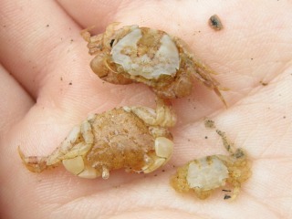 タカノケフサイソガニ、ヒライソガニ、マメコブシガニ、ガザミ、ヤマトオサガニ、コメツキガニ、ユビナガホンヤドカリ、ヨコエビ
