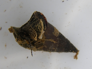 【左】少し汚い水にすむカワニナカワニナ(水質階級U)