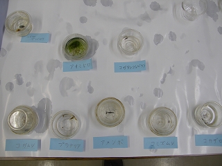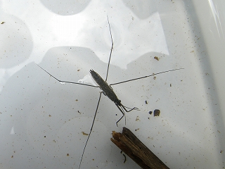 マツモムシ、ミズムシ、ヒメガムシ、コオイムシ、ハイイロゲンゴロウ、アメンボ、ハグロトンボ、シオカラトンボとヤゴ、ギンヤンマのヤゴ、コガタシマトビケラ、コカゲロウ、ガガンボ