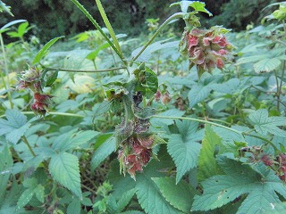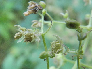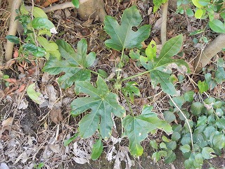 【左】カナムグラの雄花          【中】カナムグラの雌花          【右】ヤツデ(八手)の葉は幾つに分かれている