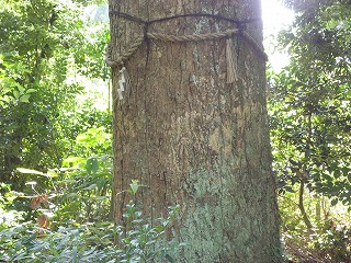 【左】オオワライタケの味は苦く有毒で幻覚作用起こします。      【中】この鳥居をくぐると祟(たた)りがあります      【右】一部、ヒノキが植林されていました