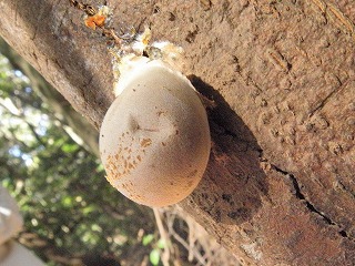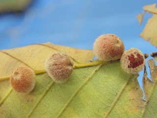 【左】ヒトリガの仲間?           【中】オオカマキリの卵塊          【右】ナラハウラマルタマフシ の虫こぶ?
