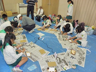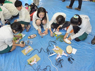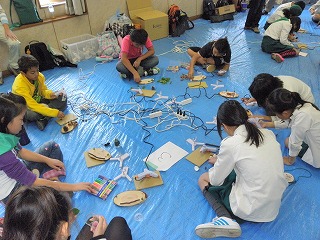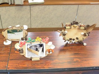 【左】【中】作品作りに取り組んでいます             【右】作品発表、みんなご機嫌でした。