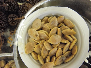 【左】クヌギ               【中】カボヤ              【右】マツボックリ