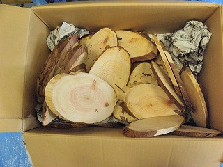 【左】貝            【中】ハスノハカシパン                       【右】ヒノキのスライス