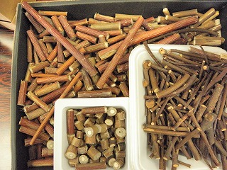 【左】マツの樹皮               【中】イチョウの枝             【右】枝