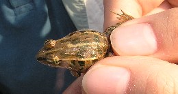 【右】絶滅危惧種になっているダルマガエルです。知多地方ではよく見かけますが全国的にはめずらしいカエルです。