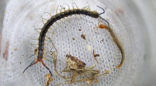 【右】アオズムカデとトビズムカデです。どちらも強い毒があります。噛まれないようにしましょう。