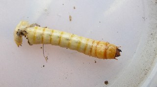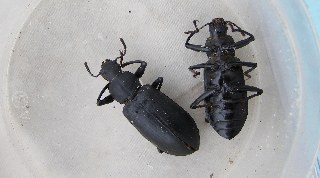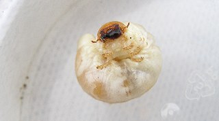 【中】ユミアシゴミムシダマシの幼虫。枯れ木を食べています。