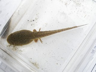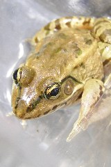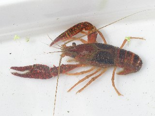 【右】アメリカザリガニ。ウシガエルもアメリカザリガニも外来種で昔から日本に住む似たような生き物に大きな被害を出しています。