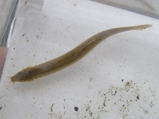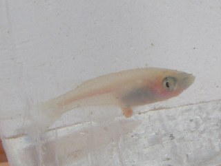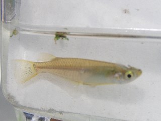 【右】シロメダカ。ヒメダカもシロメダカも誰か放流したのでしょうか。観賞ですから放流しないようにしましょう。