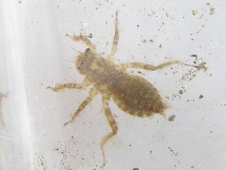 【中】コオイムシ。お父さんが背中に赤ちゃんを背負います。