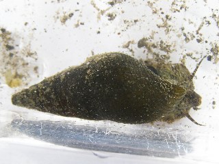 【左】カワニナ。ゲンジボタルのエサで有名です。ゲンジボタルもヘイケボタルも土手がコンクリートでは住むことができません。