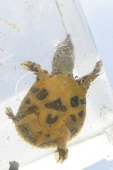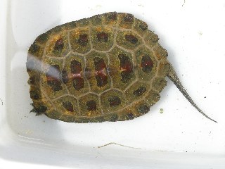 【中】スッポンの背中と腹。首が伸びて咬まれるから注意しましょう。