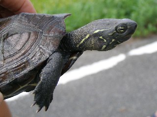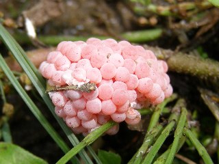 【左】美しいスクミリンゴガイの卵塊。【右】最近少なくなった在来種のクサガメ。