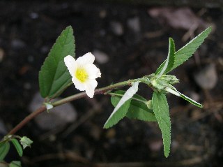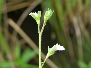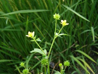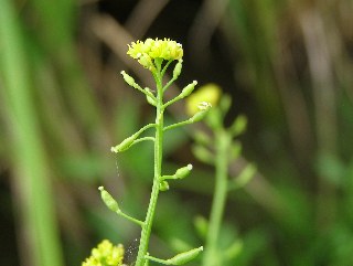 【右】水田付近の植物、スカシタゴボウです。よく似たイヌガラシは果実が長いです。