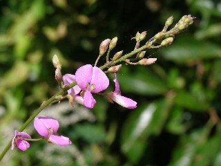 【左】土手の植物、アメリカ原産のアレチヌスビトハギです。在来のヌスビトハギが珍しくなりました。