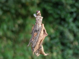【右】ミノムシが糸でブランコをしていました。オオミノガでしょうか。オオミノガヤドリバエにより見られなくなったらしいですが、復活ですか。