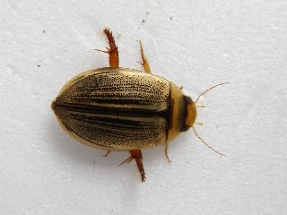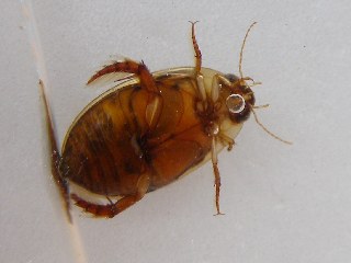 【右】コシマゲンゴロウのお腹です。ゲンゴロウは羽の下に空気のタンクがありますのでガムシのようにお腹が光っていません。
