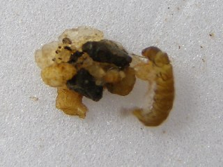 【中】コガタシマトビケラと石を固めて作った巣です。