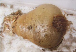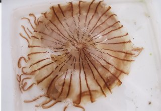【左】干潟に住むダイコンイソギンチャク。 【右】アカクラゲ。触手には毒が有るので触らないで。