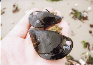 【中】ムラサキイガイで別名ムール貝といわれヨーロッパでは食用にしています。