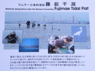 【左】ラムサール条約に指定された藤前干潟の説明。