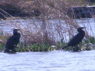 【右】カワウ、左の鳥は繁殖羽が目立つ
