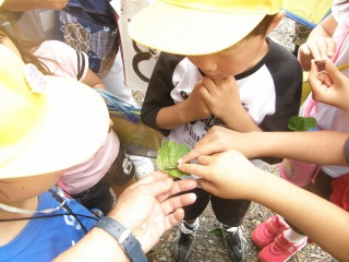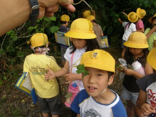 【右】木の葉で色々な遊びを考えました。