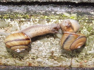 【左】地域文化センターの庭にキクメタケが生えていました。 【右】カタツムリの結婚式?