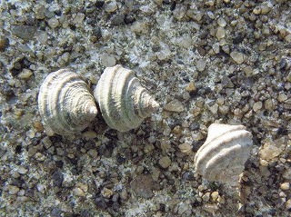 【左】アラムシロガイ 【中】タマキビ 【右】イボニシ