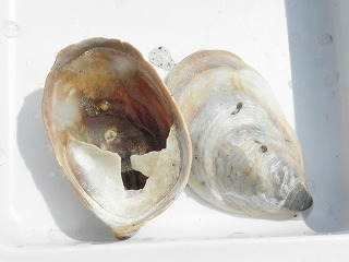 【左】子どもも大人も大喜び 【中】魚も採れたよ 【右】たくさん貝がいました。