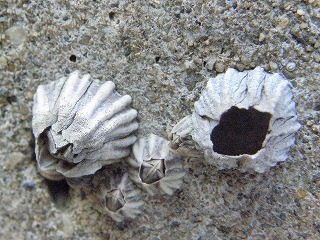 【左】ニホンスナモグリ 【中】45 【右】フジツボ(外来)