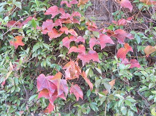 【左】シロバナサクラタデ          【中】カリン(栽培)香りがいいです        【右】ツタ。(真っ赤だな、真っ赤だなの童謡歌の植物)