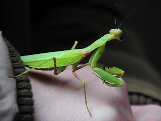 【左】ハラビロカマキリの卵塊         【中】ハラビロカマキリ          【右】コクワガタとその幼虫